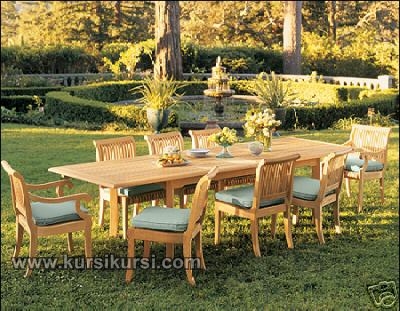 Furniture Kayu Set Kursi Taman Outdoor Furniture ini memiliki delapan kursi taman dan juga memiliki satu meja taman yang berukuran panjang , Furniture Kayu Set Kursi Taman Outdoor Furniture juga memiliki sofa yang sangat indah juga sangat empuk yang bisa di bongkar pasanga Furniture Kayu Set Kursi Taman Outdoor Furniture