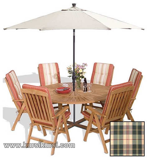 Garden Furniture Set Kayu Jati Jepara Terbaru memiliki sandaran serta dudukan yang nyaman karena memiliki sofa yang bisa di copot serta jok Garden Furniture Set Kayu Jati Jepara Terbaru memiliki motif kota kotan serta memiliki payung Garden Furniture Set Kayu Jati Jepara Terbaru .
