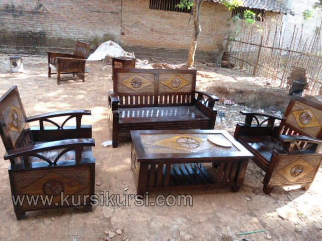 Kursi Tamu Set Minimalis Jokowi Motif Matahari Asli Jepara