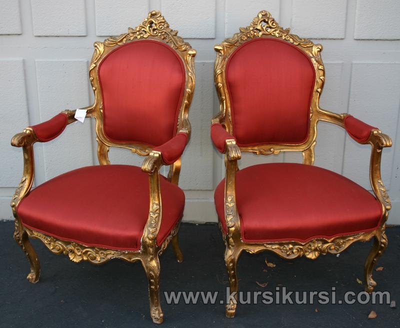 Model Set Kursi Teras Mewah dengan Warna Merah Emas Asli Mebel Jepara