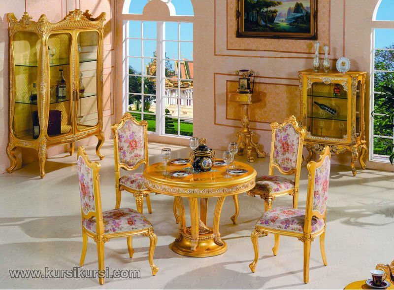 Ruang Makan Mewah Sederhana Finishing Gold memiliki desain meja bundar yang unik dan cantik. Di setiap sisi lingkarannya terdapat ukiran indah yang khas ukiran dari jepara. Selain Ruang Makan Mewah Sederhana Finishing Gold, kami juga memiliki produk furniture lainnya, seperti tempat tidur, lemari, mimbar dan lain-lain. Silakan pesan produk piliha Anda kepada kami. Dan sudah menjadi tujuan kami untuk selaalu memproduksi dan menjual Ruang Makan Mewah Sederhana Finishing Gold.