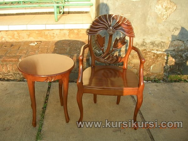 Set Kursi Teras Jati Jepara memiliki ukiran khas jepara yang ada di sandaran Set Kursi Teras Jati Jepara dengan motif yang bagus serta indah bentuk ukiran bunga serta daun Set Kursi Teras Jati Jepara .
