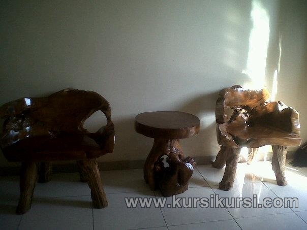 Set Kursi Teras Motif Kayu Akar memiliki desain yang unik serta tidak ada yang meyerupai bentuk seperti Set Kursi Teras Motif Kayu Akar karena bahan pembuatan ini adalah dari akar kayu jati perhutanan Set Kursi Teras Motif Kayu Akar