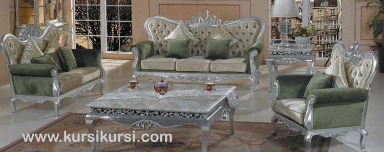 Silver Leave Sofa Tamu Jepara adalah desain set kursi terbaru yang sudah banyak di jual di toko-toko, tetapi Silver Leave Sofa Tamu Jepara yang kami produksi berbeda dengan desain-desain kursi yang ada. Silver Leave Sofa Tamu Jepara ini mempunyai ukiran yang indah di setiap sisinya, serta perpaduan warna perak dan hijau membuatnya terlihat elegan dan merupakan perpaduan warna yang serasi.